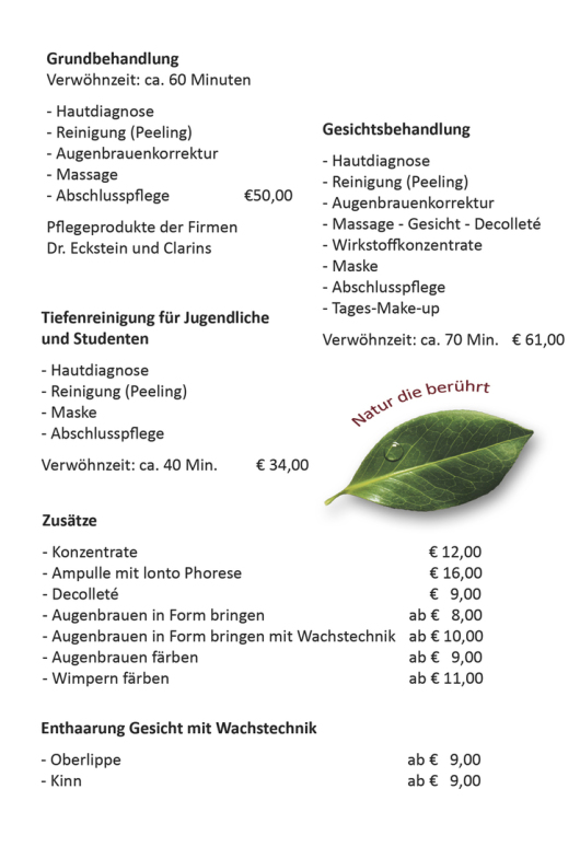 Von der klassischen Schönheitsbehandlung bis zu erholsamen Massagen - unsere Mitarbeiter verwöhnen Sie gerne rundum und lassen jede Behandlung zu einem unvergesslichen Erlebnis werden.